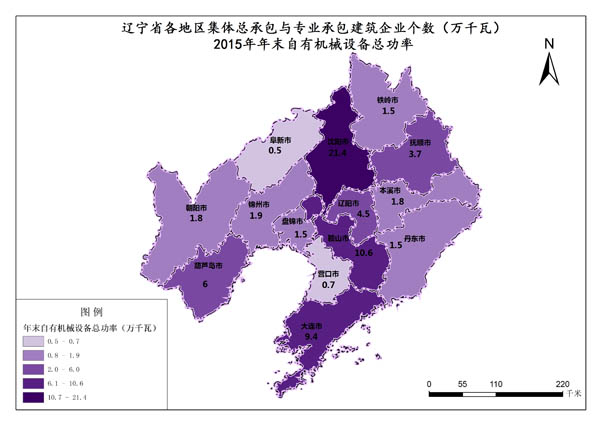 辽宁省自有机械设备年末总功率指本企业自有施工机械、生产设备、运输设备以及其他设备等列为在册固定资产的生产性机械设备年末总功率,按设定能力或查定能力计算。包括机械本身的动力和为该机械服务的单独动力设备,如电动机等。
