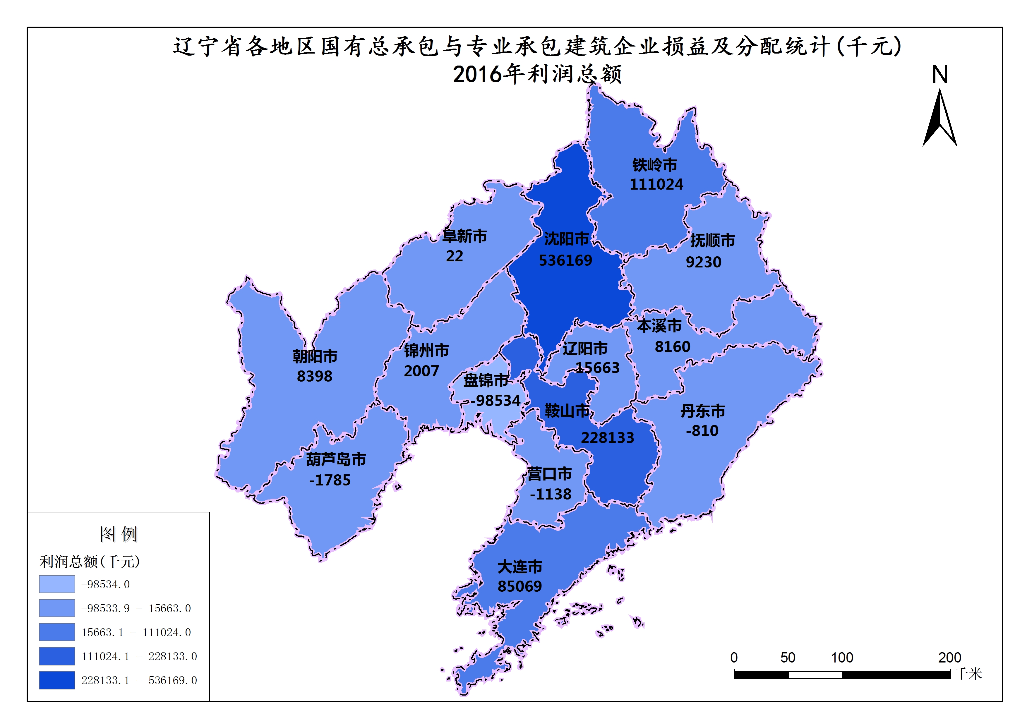 辽宁省2016年利润总额 沈阳市最多为536169千元,平均值为64400千元