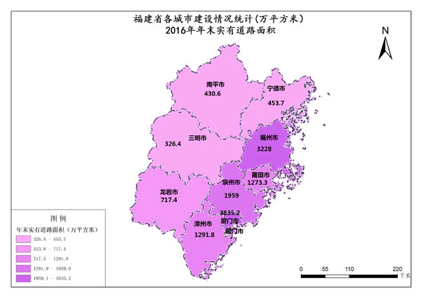 福建省道路面积指道路面积和与道路相通的广场、桥梁、隧道的面积(统计时,将人行道面积单独统计)。