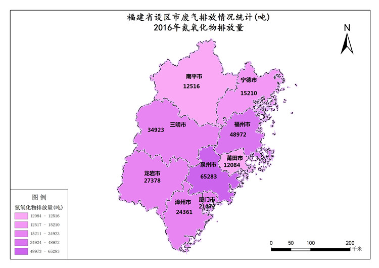 福建省氮氧化物排放量指排入大气的氮氧化物数量。