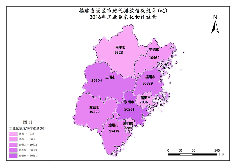 福建省工业氮氧化物排放量指工业生产中排入大气的氮氧化物数量。